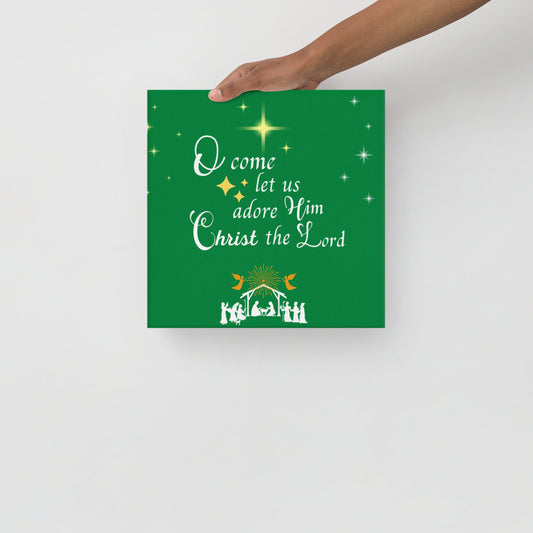 O come let us adore Him thin canvas. Thin red Christmas canvas, scripture canvas